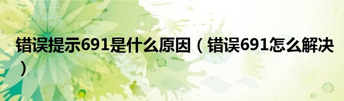 今天小饼为大家解答以下问题,关于错误提示691是什么原因,错误691怎么解决很多人还不知道,现在让我们一起来看看吧!