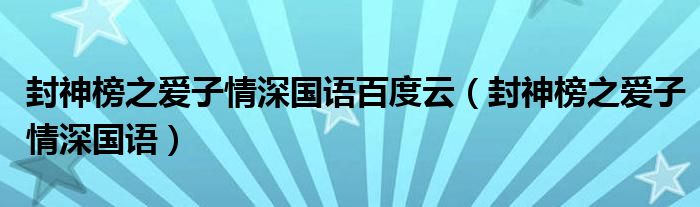 大家好,小华来为大家解答以上的问题。封神榜之爱子情深国语百度云,封神榜之爱子情深国语这个很多人还不知道,现在让我们一起来看看吧!
