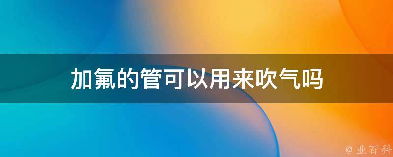 加氟的管不可以用来吹气。加氟的管是用来给空调等制冷设备加注制冷剂,以起到制冷的效果。这种管路内是含有压力的,如果用来吹气,可能会造成压力泄露,从而对人身安全造成威胁,因此不建议使用加氟的管来吹气。
