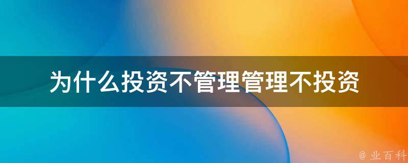 没有投资不管理管理不投资这个说法。实际上,投资和管理是相互关联的。在投资过程中,需要借助有效的管理手段来确保投资的顺利实施和收益的稳定。同时,在管理过程中,也需要根据投资策略和市场情况来制定相应的管理措施,以实现资产的有效运作和价值的最大化。