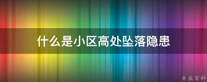 小区高处坠落隐患是指小区内建筑物以及物品从高处坠落所造成的危险。在小区中,有些居民楼阳台、空调外挂机上会放置一些杂物,甚至有些老旧小区的阳台还会堆砌杂物、盆栽,甚至悬挂拖把等现象,这些杂物一旦从高处坠落,就可能会砸伤行人,造成安全事故。对于小区的物业和居民来说,要定期检查建筑物和高处物品的情况,及时清理和维修有坠落隐患的物品,以保障小区的安全。