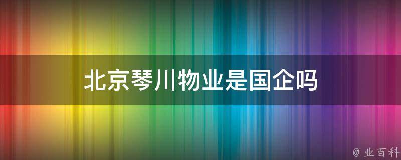 北京琴川物业不是国企,而是私营企业。其经营范围包括销售预包装食品(限分支机构经营)、餐饮服务(限分支机构经营)、会议服务、物业管理、销售文化用品、体育用品、建筑材料、工艺品、日用品以及经济贸易咨询等。