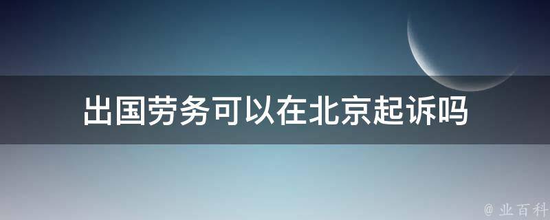 出国劳务不可以在北京起诉,一般只能到被告住所地或者合同履行地人民法院起诉。《民事诉讼法》第二十四条规定,因合同纠纷提起的诉讼,由被告住所地或者合同履行地人民法院管辖。劳务合同法律纠纷的起诉条件:原告是与本案有直接利害关系的公民、法人和其他组织;有明确的被告;有具体的诉讼请求和事实、理由;属于人民法院受理民事诉讼的范围和受诉人民法院管辖。