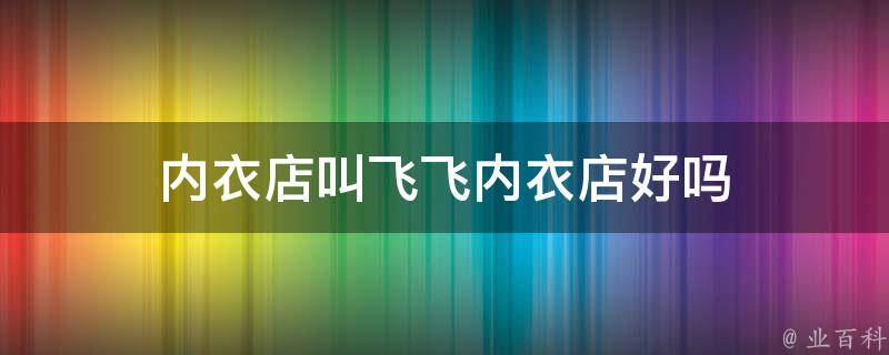 内衣店叫飞飞内衣店好。这个店名简洁明了,易于记忆,并且与内衣相关。同时,店名中的飞飞有一种轻盈、自由的感觉,这也可以被视为对内衣产品的一种寓意,代表了舒适、自由、轻松的内衣体验。最终的店名选择还需要考虑店铺定位、目标受众、品牌形象等多个因素,确保店名与品牌形象相符合,能够吸引目标受众并提升品牌形象。