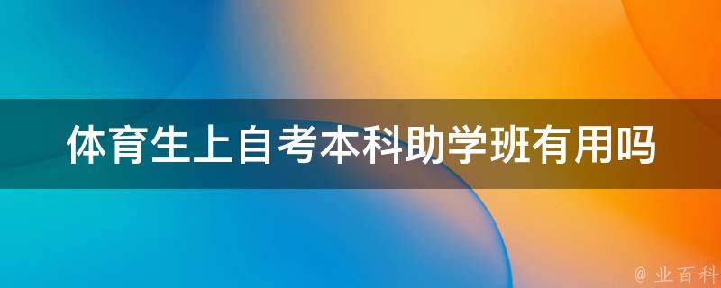 体育生上自考本科助学班有用,自考助学班是自学考试的一种学习方式,简单来说就是利用助学班自考的方式,帮助考生提升成绩。根据相关数据统计,报考自考助学班的考试通过率比完全自学的要高一点,所以自考助学班对于考生的作用还是有一定的。
