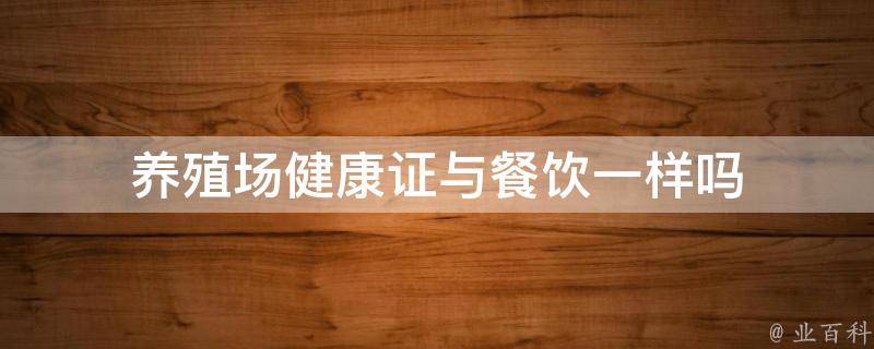 养殖场健康证与餐饮一样,根据《中华人民共和国食品安全法》第四十五条得知,食品生产经营者应当建立并执行从业人员健康管理制度。患有国务院卫生行政部门规定的有碍食品安全疾病的人员,不得从事接触直接入口食品的工作,从事接触直接入口食品工作的食品生产经营人员应当每年进行健康检查,取得健康证明后方可上岗工作,健康证只有一种,所以工厂与餐饮的健康证外观是一样的。