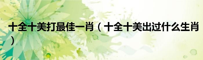 大家好,我是小科,我来为大家解答以上问题。十全十美打最佳一肖,十全十美出过什么生肖很多人还不知道,现在让我们一起来看看吧!