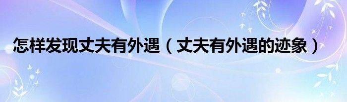 大家好,小联来为大家解答以上的问题。怎样发现丈夫有外遇,丈夫有外遇的迹象这个很多人还不知道,现在让我们一起来看看吧!