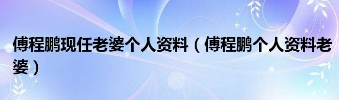 大家好,小联来为大家解答以上的问题。傅程鹏现任老婆个人资料,傅程鹏个人资料老婆这个很多人还不知道,现在让我们一起来看看吧!