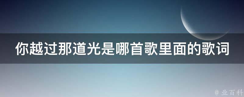 你越过那道光是《那道光》里面的歌词。《那道光》是李海东演唱的歌曲,由李海东填词,王京伟谱曲,收录在专辑《那道光》中。歌词节选:要停下来啊,看这周围的一切,那些孩子啊,你越过那道光。