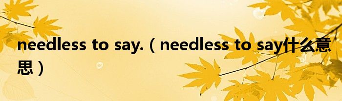 大家好,我是小科,我来为大家解答以上问题。needless to say.,needless to say什么意思很多人还不知道,现在让我们一起来看看吧!