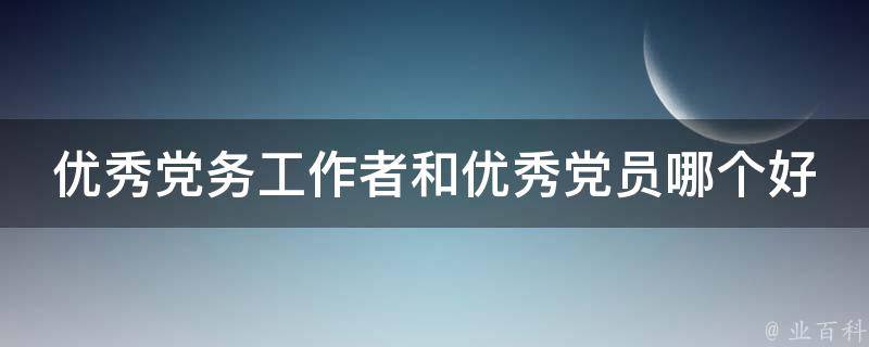 优秀党务工作者和优秀党员都很好,但优秀党务工作者的含金量更高。优秀党务工作者是一个荣誉称号,主要授予各方面比较优秀,工作成绩突出的党务工作者。优秀党务工作者的表彰主要是对他们在党务工作中的辛勤付出和卓越成就的认可。而优秀党员则是指那些在思想觉悟、政治表现、道德品质、业务能力等方面都表现出色的党员。