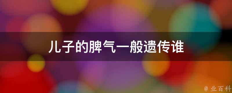儿子的脾气一般遗传谁并没有科学定论,但一般会受到父母的影响,如果父母的脾气比较温和,孩子的脾气也会比较温和,如果父母的脾气比较暴躁,孩子的脾气多数也比较暴躁。孩子的性格和脾气多数是在后天的成长发育和家庭环境中形成的,如果希望孩子有一个好的脾气,可以给孩子创造一个和谐的家庭环境。