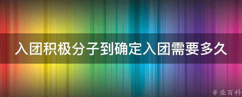 视情况而定。入团积极分子到确定入团的时间需要三个月以上,没有详细时间。入团积极分子在发展入团之前要参加不少于8学时的团课学习。团员发展的过程包括:符合条件的青年提出入团申请,入团积极分子的确定、培养考察,以及确定发展对象和新团员的大会表决、审批、宣誓、教育等环节。