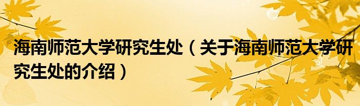 大家好,小夏来为大家解答以上的问题。海南师范大学研究生处,关于海南师范大学研究生处的介绍很多人还不知道,现在让我们一起来看看吧!