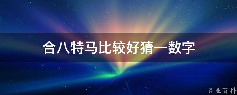 最佳答案合八特马比较好猜一数字是8。合八就是两个数相加之和得八,就是1和7、2和6、3和5、4和4、8和0相加等于8,就是合八,猜一数字则是中心体8。猜谜语主要指暗射事物或文字等供人猜测的隐语,也可引申为蕴含奥秘的事物。谜语源自中国古代民间,历经数千年的演变和发展。它是古代中国劳动人民集体智慧创造...