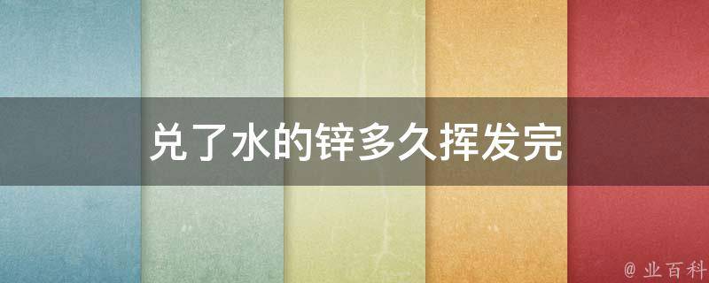 兑了水的锌通常需要2-3个月才能完全挥发完。锌是一种金属元素,在空气中可以逐渐被氧化,形成氧化锌,然后被进一步分解形成氯化锌等化合物,最终会完全挥发。然而,兑了水的锌挥发速度会比干燥的锌慢得多,因为水分会抑制氧化锌的形成和分解。