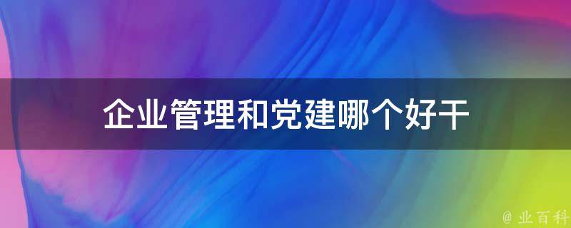 企业管理和党建都各有其特点,无法简单判断哪个更好干。企业管理是对企业的生产经营活动进行计划、组织、指挥、协调和控制等一系列职能的总称,是企业的基础。而党建则是在企业内部进行党组织的建设和发展,是企业发展的重要保障。
