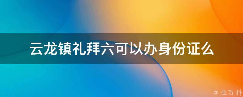 最佳答案云龙镇礼拜六不可以办身份证,因为办证部门上班时间是工作日的上午九点到下午五点,中间会有休息时间,每周的上班时间为周一至周五。身份证的办理条件:公民应当自年满十六周岁之日起三个月内,向常住户口所在地的公安机关申请领取居民身份证;未满16周岁的公民,自愿申请领取二代证的,由其监护人...