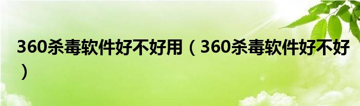360杀毒软件好不好用(360杀毒软件好不好)
