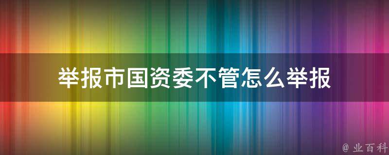 举报市国资委不管的方法有:拨打12345市长热线电话进行举报;向上一级国资监管机构举报;向纪检监察部门举报。需要注意的是,举报时需要提供相关证据和详细信息,以便于有关部门进行调查和处理。