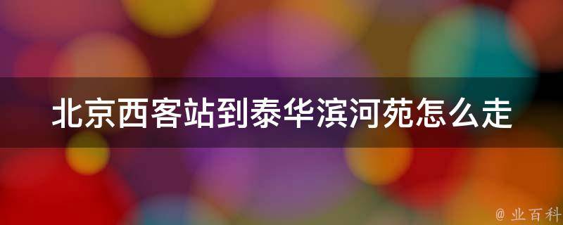 从北京西客站到泰华滨河苑,可以乘坐公交线路413路,经过2站到达南十里居北站,再步行约100米到达泰华滨河苑。北京西站又称北京西客站,位于中国北京市丰台区,是中国铁路北京局集团有限公司管辖的特等站。