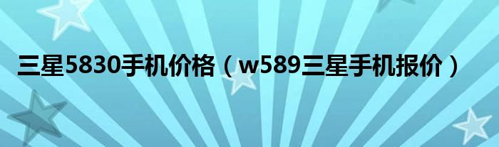 今天小饼为大家解答以下问题,关于三星5830手机价格,w589三星手机报价很多人还不知道,现在让我们一起来看看吧!