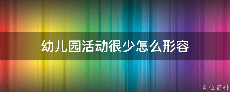 幼儿园活动很少可以用单调、缺乏活力等词语来形容。这意味着幼儿园缺乏足够的多样性和趣味性,难以激发孩子们的兴趣和热情。幼儿园原称勘儿园,是几百年前从普鲁士引进的体制,适龄幼儿一般为3岁至6岁。