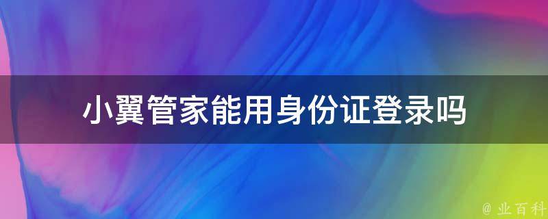 小翼管家不能用身份证登录。小翼管家登录方法:打开小翼管家APP,点击我的;点击登录,输入手机号码和密码;点击登录即可。小翼管家APP是中国电信推出的面向智慧家庭用户的统一APP。具有控制配置家庭网络、控制机顶盒及业务、控制智能外设、控制第三方应用等功能。