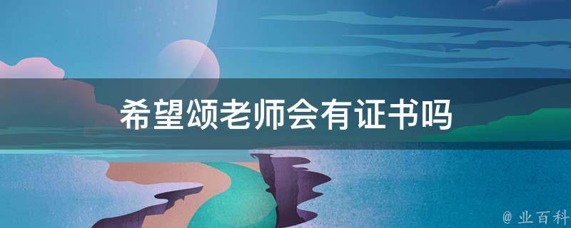 希望颂老师会有证书。希望颂组委会设有优秀辅导老师奖,向优秀指导教师颁发荣誉证书。优秀指导教师一等奖:每名教师至少辅导20名学生参赛,参赛学生中有一等奖及以上获得者,总获奖学生不低于5名。优秀指导教师二等奖:每名教师至少辅导20名学生参赛,参赛学生中有二等奖获得者,总获奖学生不低于5名。优秀指导教师三等奖:每名教师至少辅导20名学生参赛,参赛学生中有三等奖获得者,总获奖学生不低于5名。
