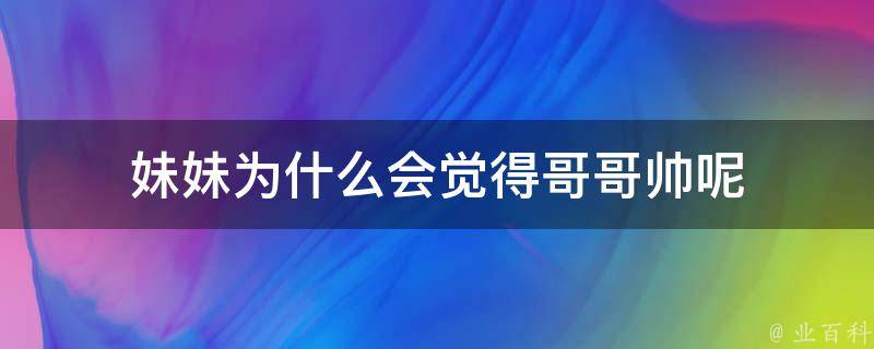 妹妹觉得哥哥帅是因为在她心里哥哥很重要,并且证明哥哥确实长得的很帅。妹妹一般不会随意开口说哥哥长得帅,除非她真心的觉得你长得帅,所以才会鼓起勇气对你说,也表明了她对你的认可,说明在妹妹的心里面,哥哥还是占了很重要的位置。