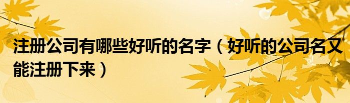 大家好,小联来为大家解答以上的问题。注册公司有哪些好听的名字,好听的公司名又能注册下来这个很多人还不知道,现在让我们一起来看看吧!