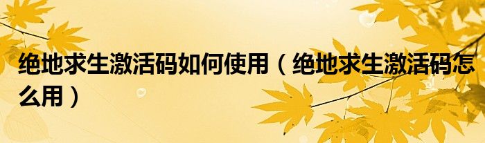 大家好,我是小科,我来为大家解答以上问题。绝地求生激活码如何使用,绝地求生激活码怎么用很多人还不知道,现在让我们一起来看看吧!