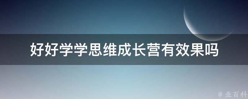好好学学思维成长营有效果。思维能力直接关系到儿童的学习能力,同时也会直接影响儿童在学校的表现。逻辑思维能力增强,能够让孩子流畅地表达自我、展现自我。有助于培养孩子良好的性格、性情、人格。能够从多个角度和层面看待问题,不只思考表面问题。
