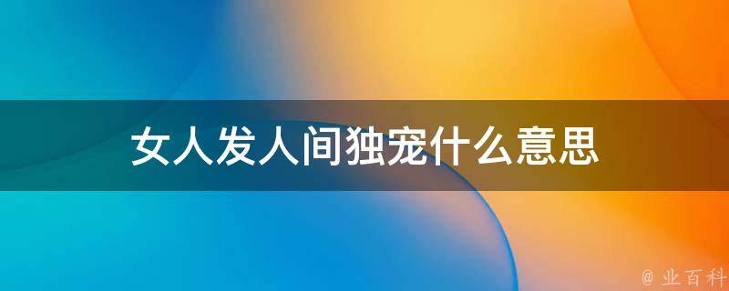 女人发人间独宠的意思是某个人在某个领域或者某个方面非常独特,并且受到特别的宠爱或者优待。当然,这个词语也可以被解读为一种自嘲或者幽默的方式,表达自己并不是那么出色或者特别,但是仍然希望能够得到别人的关注或者宠爱。