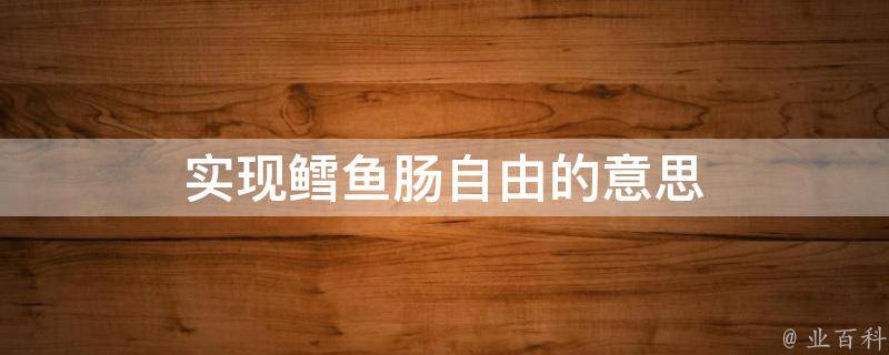 实现鳕鱼肠自由的意思是可以随心所欲地享用鳕鱼肠,不必担心价格或购买渠道等限制。这个说法可能暗示着一种自由和享受的生活方式,即人们可以随心所欲地享受自己喜欢的食品和饮品,不必担心费用或健康问题。