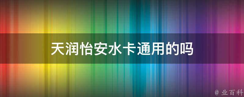 天润怡安水卡不是通用的。天润怡安水卡是针对特定小区或建筑物的用水卡,可能仅在该小区或建筑物内有效。因此,如果在别的区域需要用水,可能需要使用其他的水卡或付费方式。水卡的性质属于ic卡,是市面上比较常见的智能卡,性价比较高。