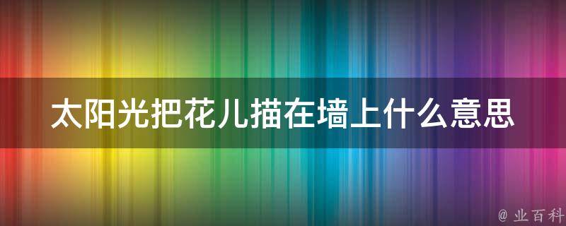 太阳光把花儿描在墙上的意思是:在阳光下,花朵的影子投射在墙上,形成了一种美丽的图案。这种表达方式通常用来形容美丽的景色或者生命的活力。这种美丽的景象往往让人感到心旷神怡,同时也体现了生命的活力和美丽。