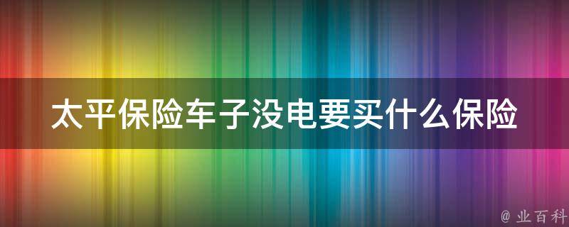 太平保险车子没电要买车损险,并享受免费搭电服务。各大保险公司推出的车险业务都有提供免费道路救援服务,其中就包括电瓶搭电,如果被保险车辆电瓶没电了可以拨打保险公司车险服务电话申请救援,但这并不算出险,也不会影响来年的投保保费。