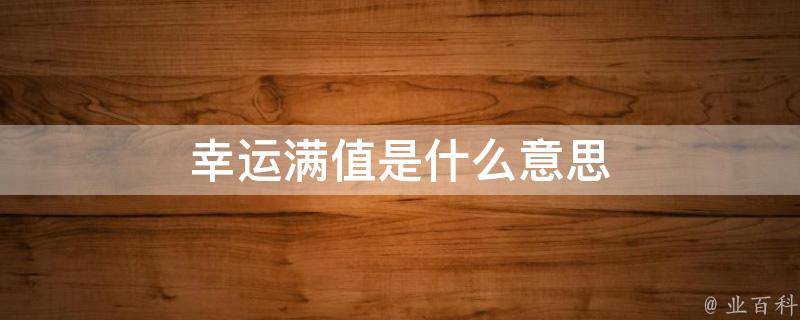 幸运满值是幸运的程度达到100的状态。幸运值是一种衡量个人运气的指标,范围从0到100。当幸运值达到100时,表示个人运气非常好,可能会在各个方面获得成功和好运。幸运值的计算通常基于个人的行为、决策和运气因素,可以通过积极的态度、努力工作和良好的决策来提高幸运值。