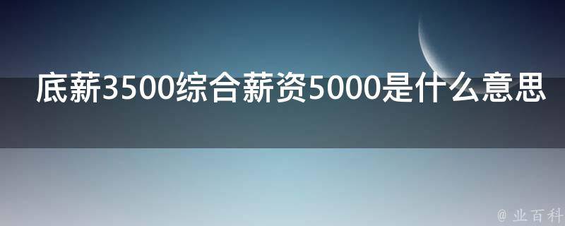 底薪3500综合薪资5000是指员工每月的工资收入为5000元,这5000元是员工实际得到的总工资。综合薪资一般是根据员工的底薪、奖金、津贴和补贴、延长工作时间的工资报酬以及特殊情况下支付的工资等来计算的。底薪3500元加上其他的福利和补贴等,最终得到的综合薪资为5000元。