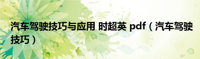 大家好,我是小科,我来为大家解答以上问题。汽车驾驶技巧与应用 时超英 pdf,汽车驾驶技巧很多人还不知道,现在让我们一起来看看吧!