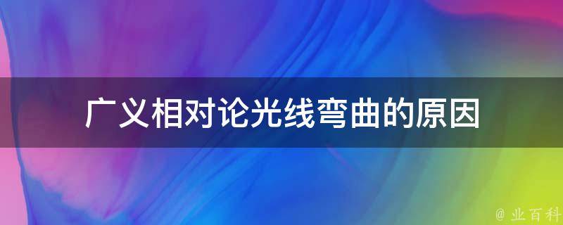 最佳答案广义相对论中,光线弯曲的原因是质量和能量会扭曲时空,从而使光线弯曲,这种现象被称为引力透镜效应。当光线经过质量较大的物体附近时,例如恒星或星系,它们的引力会弯曲光线的路径。这种弯曲效应可以导致远离质量物体的光线在其周围形成一个类似透镜的效果,使光线的方向发生偏转。