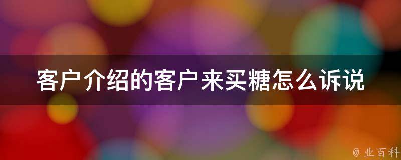 客户介绍的客户来买糖,可以说:欢迎您的光临,既然您是xx先生介绍来的朋友,我肯定会尽心尽力为您服务的。和新顾客见面,可以直接称呼其X先生/X总,拉近距离。接待要表现出十足的热情,不时地夸一下朋友或熟人的优点,刷好感度。