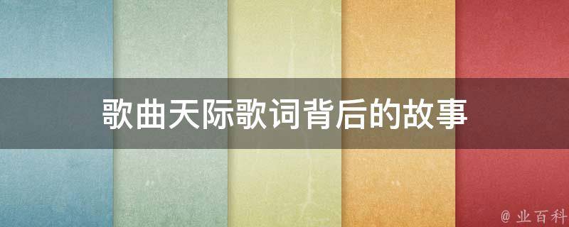 最佳答案歌曲天际歌词背后的故事是一个上市公司的富二代与移动公司的客服相爱,但受到了双方父母的强烈反对。他们在经历了一系列的困难和阻碍后,真心相爱并感动了双方父母。然而,他们的婚姻生活并不长久。在一次通话中,老婆突然告诉老公自己肚子疼,老公急忙回家,却发现老婆已经因宫外孕去世。