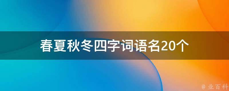 春夏秋冬四字词语名:春色满园、满园春色、春光明媚、春光融融、春光如海、夏虫语冰、夏日炎炎、夏雨雨人、夏树苍翠、夏山如碧、秋意深浓、秋兰飘香、秋雨绵绵、春花秋月、秋风过耳、寒冬腊月、越冬作物、过冬作物、秋收冬藏、冬温夏清。