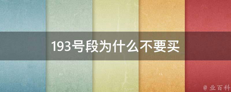 193号段不要买是因为193开头的手机号属于新号段,此号段安全系数不好,不被大多平台认可。193号段是正规的号段,它是中国电信的CDMA号码段,且是可携号转网的号段,如果客户办理了携号转网业务,那么也会有可能是移动或者是联通的客户。