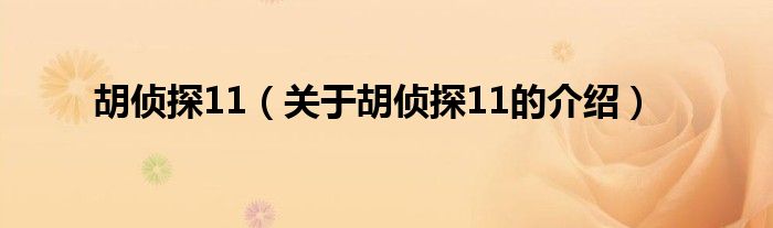 大家好,小夏来为大家解答以上的问题。胡侦探11,关于胡侦探11的介绍很多人还不知道,现在让我们一起来看看吧!