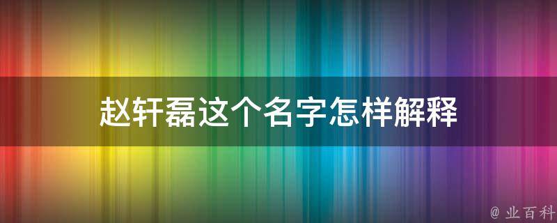 赵轩磊这个名字寓意着期望这个人有高远的志向,以及坦荡正直的品格。轩字通常表示高远、宽阔的意思,有时也用于形容人的气质或精神状态,比如轩昂用来形容人的气度不凡。磊字则有磊落之意,形容人的性格坦荡、正直,或者形容事物分明、清楚。