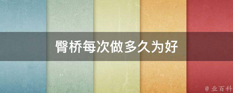 臀桥每次做30秒到1分钟为好。臀桥需要经常做才能有效果,但是锻炼之后又需要1-2天的时间来恢复,所以每周练4-5次,隔1-2天做上一次臀桥最好,那样即保证了对锻炼肌肉的刺激,又给了身体休息恢复的时间。